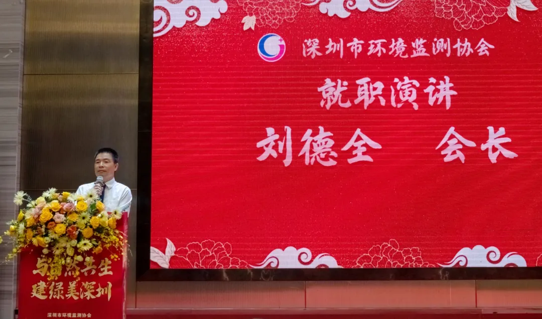 新任刘德全会长发表就职演讲。他表示感谢各级领导、社会各界、各会员单位对协会一直以来的支持,同时感谢创会杨立君会长的辛勤付出。作为新任会长,感谢大家的信任与支持,深感荣幸,同时也深感责任重大。他表示将与全体理事一起不忘初心、牢记使命,努力践行“绿水青山就是金山银山”理念,在海洋监测、物联网等方向创新发展。面向未来、同心协力,携手为深圳生态环境监测事业努力奋斗。