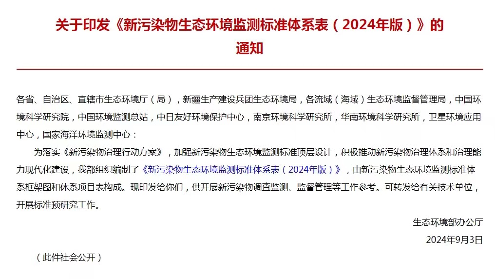 生态环境部最新印发了《新污染物生态环境监测标准体系表(2024年版)》